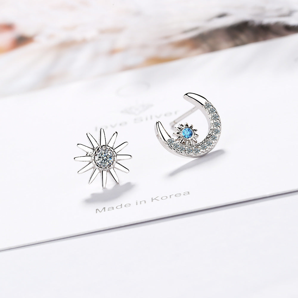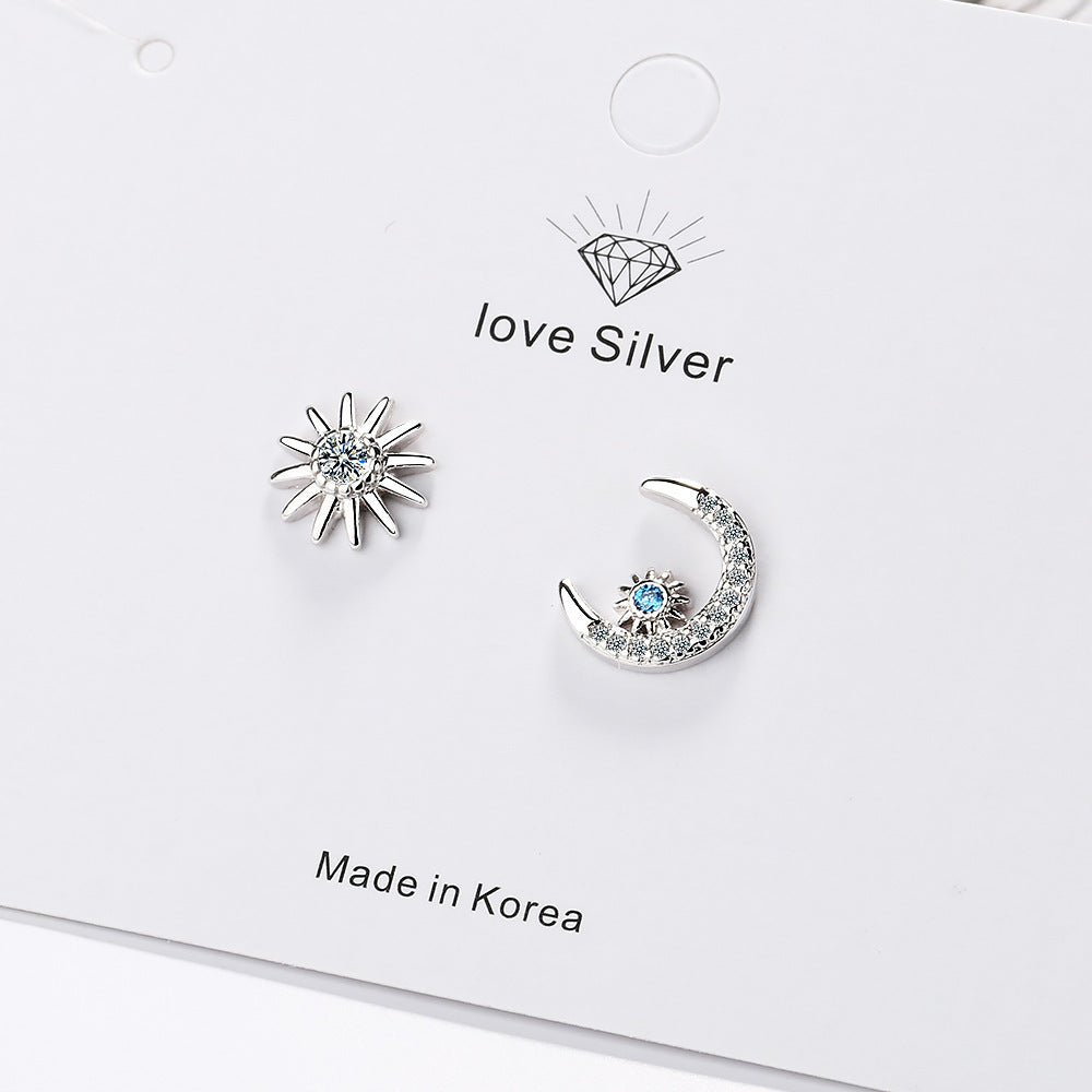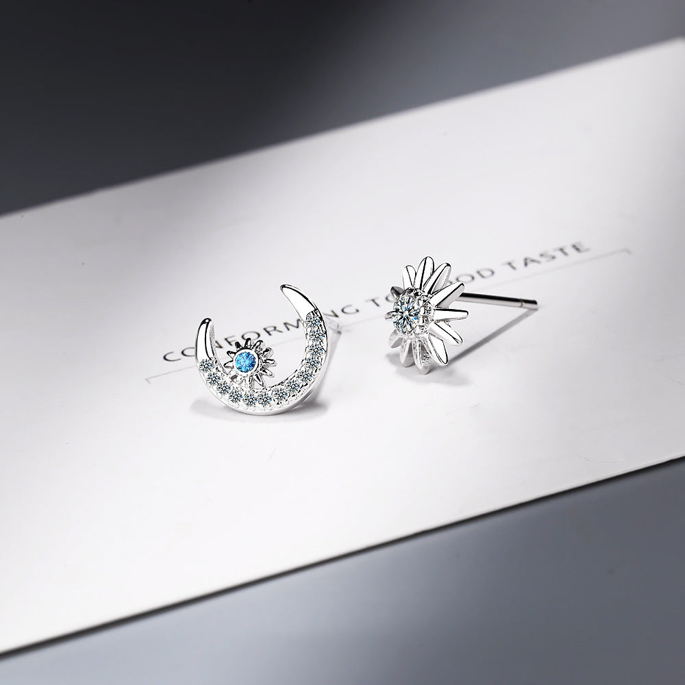 Star Moon Stud Earrings Women's Temperament Earrings Asymmetric